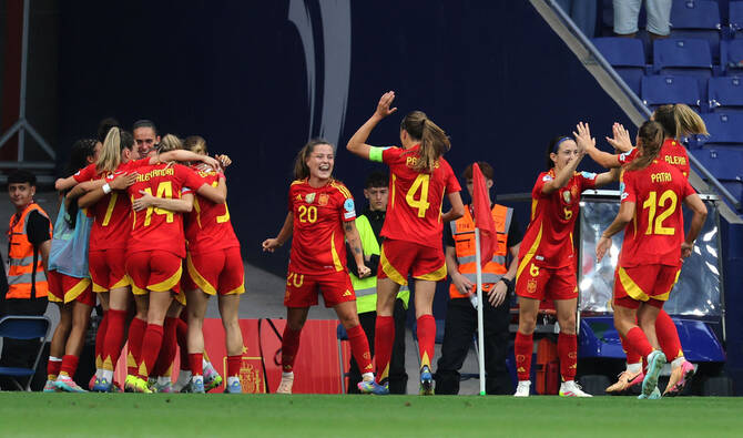 Spain piled the pressure on from kickoff, striker Esther Gonzalez forcing England goalkeeper Hannah Hampton into a superb one-handed reflex save early on, and the England defense struggled to deal with the slick passing and movement of the hosts.