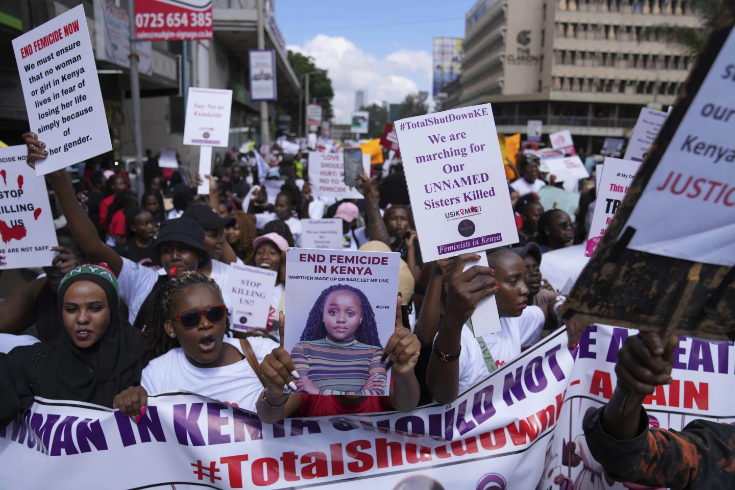 Thousands of people marched in cities and towns in Kenya during protests Saturday over the recent slayings of more than a dozen women. The anti-femicide demonstration was the largest event ever held in the country against sexual and gender-based violence.