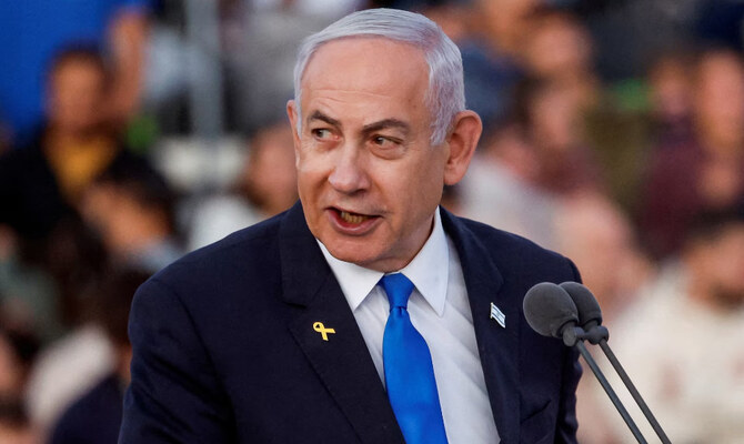 Israeli Prime Minister Benjamin Netanyahu speaks at a ceremony for military combat officers at an army base near Mitzpe Ramon, Israel, October 31, 2024.