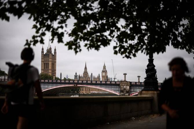 Pedestrian walk along the Southbank of the River Thames, with the Elizabeth Tower