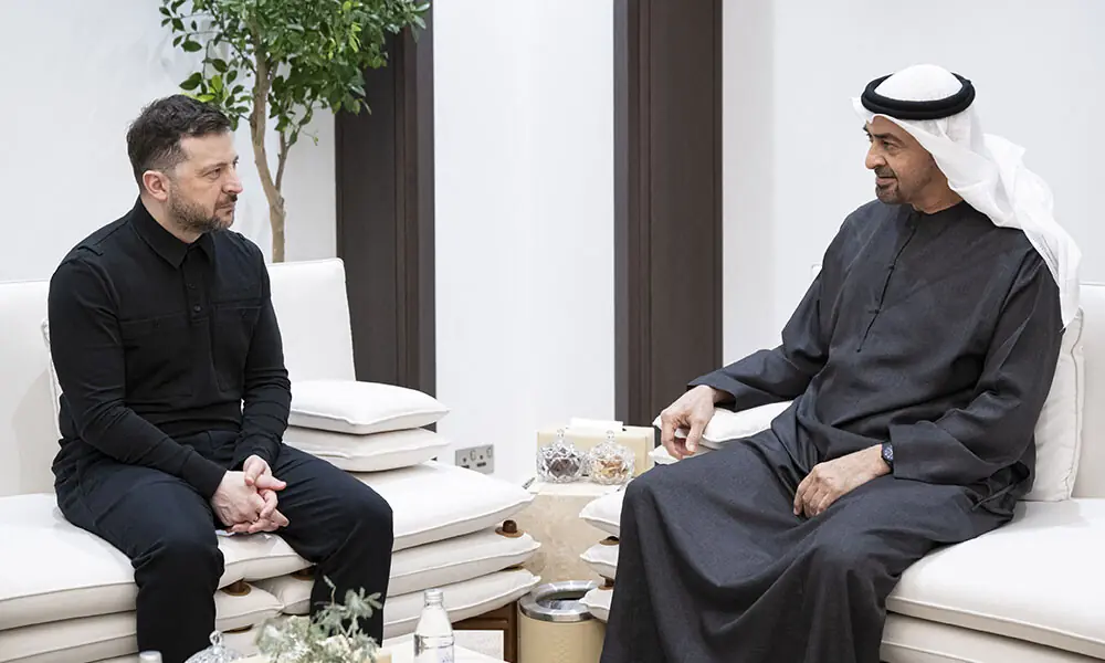 UAE’s President Sheikh Mohamed bin Zayed al-Nahyan (R) meeting with Ukrainian