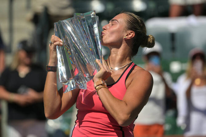 Sabalenka, a runner-up in 2023 and ‘25, finished off the win at the BNP Paribas Open with a big serve that Rybakina hit long. It was a sweltering afternoon on the court as the temperatures soared into the 90s.
